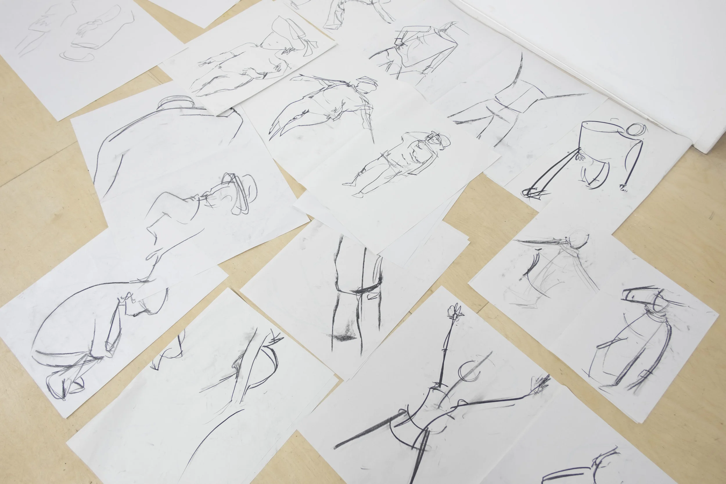 The outcomes of the session were a large number of striking, expressive drawings. The playful and fast-paced approach produced images that were able to convey the essence of personality and form using a reductive style.